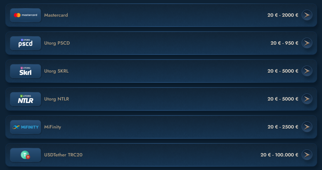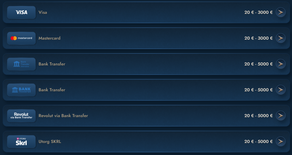 Para hacer depósitos y retiradas en Casino Online Rich Royal necesitarás métodos de pago. Por suerte, para todos, hemos incluido opciones financieras seguras, confiables y rápidas para darte el mejor trato como jugador.